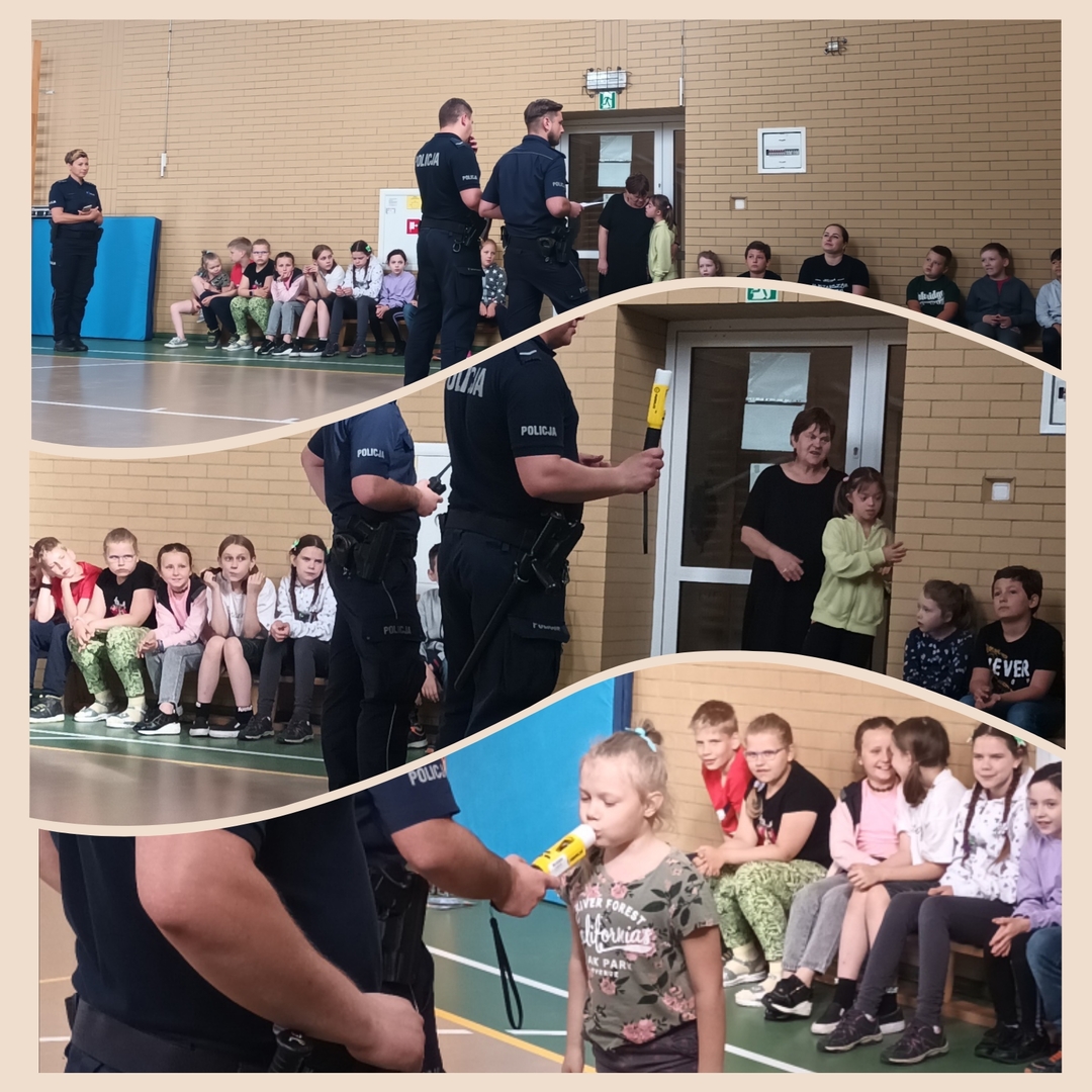 Dnia 10 czerwca 2022 r. Policjanci z Komisariatu Policji w Rychwale odwiedzili naszą szkołę, aby przestrzec dzieci przed możliwymi  zagrożeniami, w związku ze zbliżającymi się wakacjami.