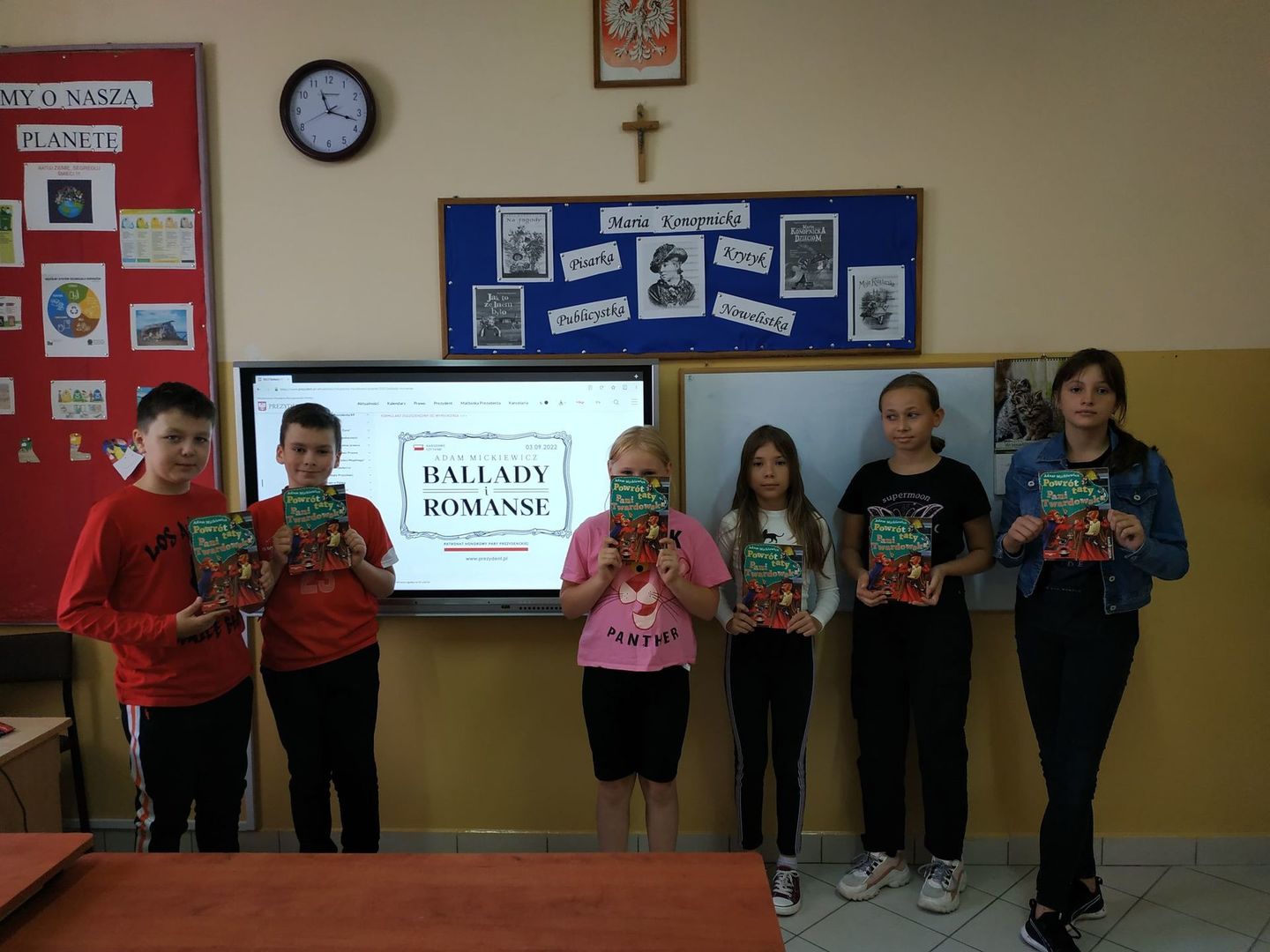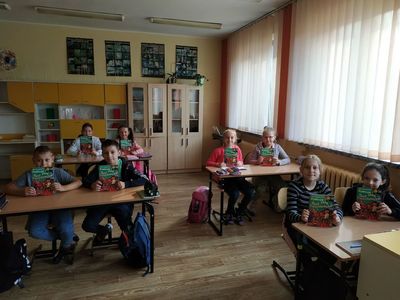Uwieńczeniem spotkań z lekturą były wykonane przez uczniów barwne ilustracje  oraz pamiątkowy stempel przesłany przez Kancelarię Prezydenta RP.