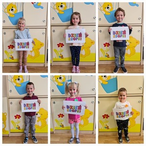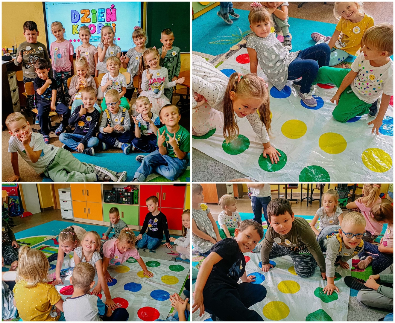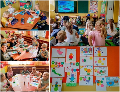 15 września Przedszkolaki obchodziły „Międzynarodowy Dzień Kropki”. Jest to święto odwagi, zabawy i kreatywności. Ma pomóc dzieciom budować pewność siebie i pobudzać wyobraźnię. Na zajęciach dzieci obejrzały filmik o Kropce. Okazało się, że kropki towarzyszą nam w codziennym życiu. Przedszkolaki wspólnie bawiły się z kropką, skakały po kropkach, a także z kropek powstały piękne prace plastyczne. Dzieci wykonały również eksperyment "Tańczące kropki". Było kolorowo, ,,kropkowo" i radośnie.