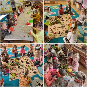 23 września przedszkolaki powitały Pierwszy Dzień Jesieni. Tego dnia w przedszkolu królowały kolory: brązowy, pomarańczowy, żółty i czerwony. W tym dniu organizowane były zajęcia o tematyce jesiennej, poprzez które dzieci przyswajały sobie wiadomości o rozpoczynającej się właśnie porze roku