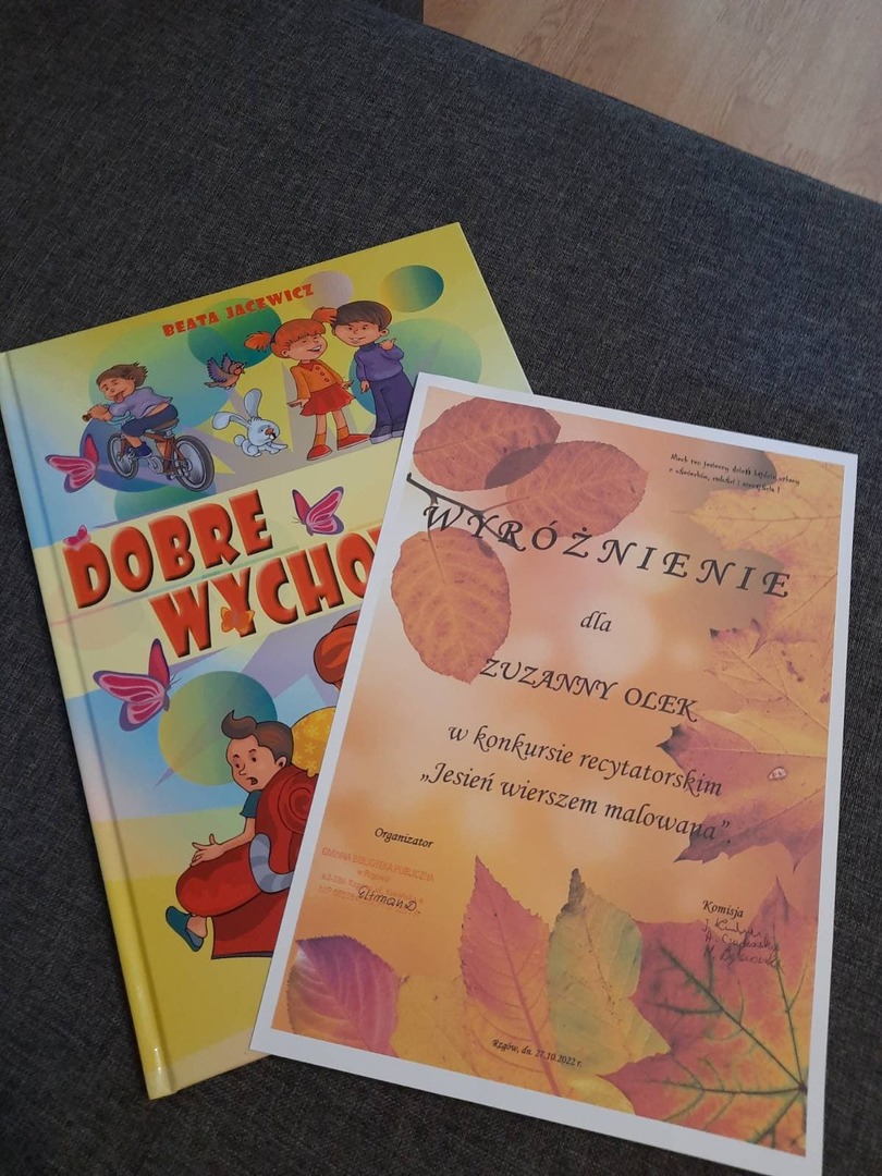 Spośród uczniów naszej szkoły wyróżnienie otrzymała uczennica kl. I Zuzanna Olek, którą do konkursu przygotowała wychowawczyni klasy.