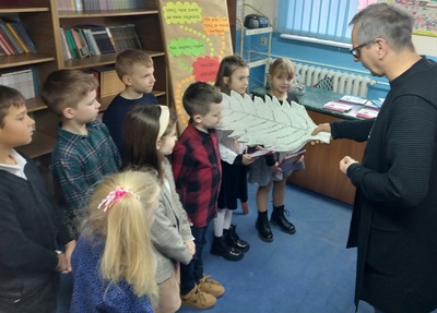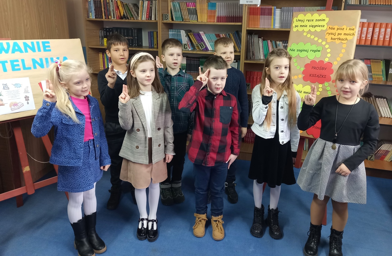 Nast臋pnie z艂o偶yli uroczyste przyrzeczenie, w którym obiecali, 偶e b臋d膮 sumiennie wype艂nia膰 obowi膮zki czytelnika. Po tych s艂owach pan dyrektor Piotr Kupski dokona艂 pasowania ka偶dego z uczniów, a bibliotekarka wr臋czy艂a dzieciom ksi膮偶eczki oraz pami膮tkowe dyplomy.