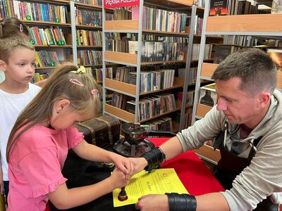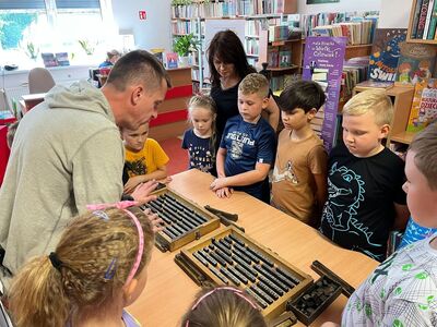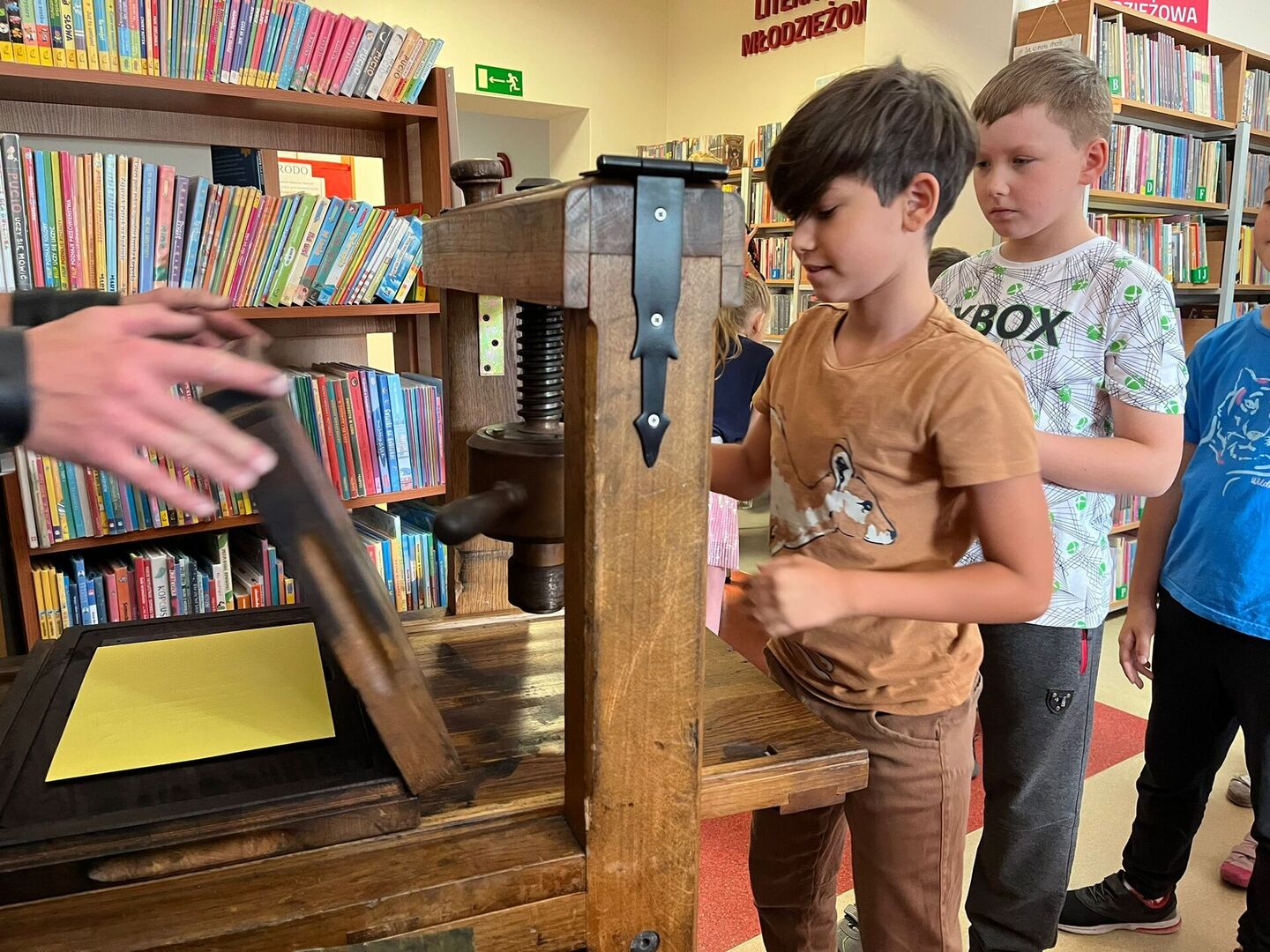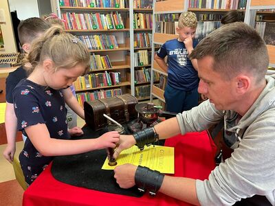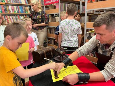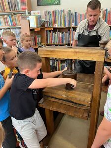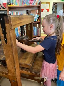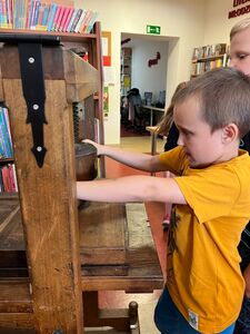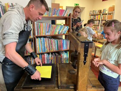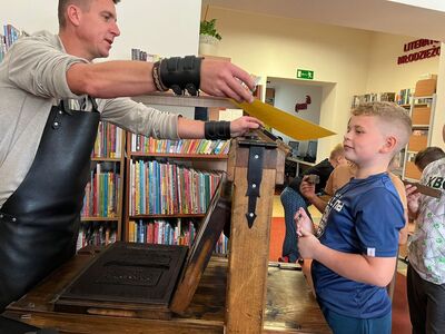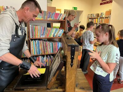 Dnia 20.09.2023 r. w Gminnej Bibliotece Publicznej w Rzgowie uczniowie z klas 1-3 uczestniczyli w warsztatach drukarskich pt ,, Skąd się wzięło pismo?”