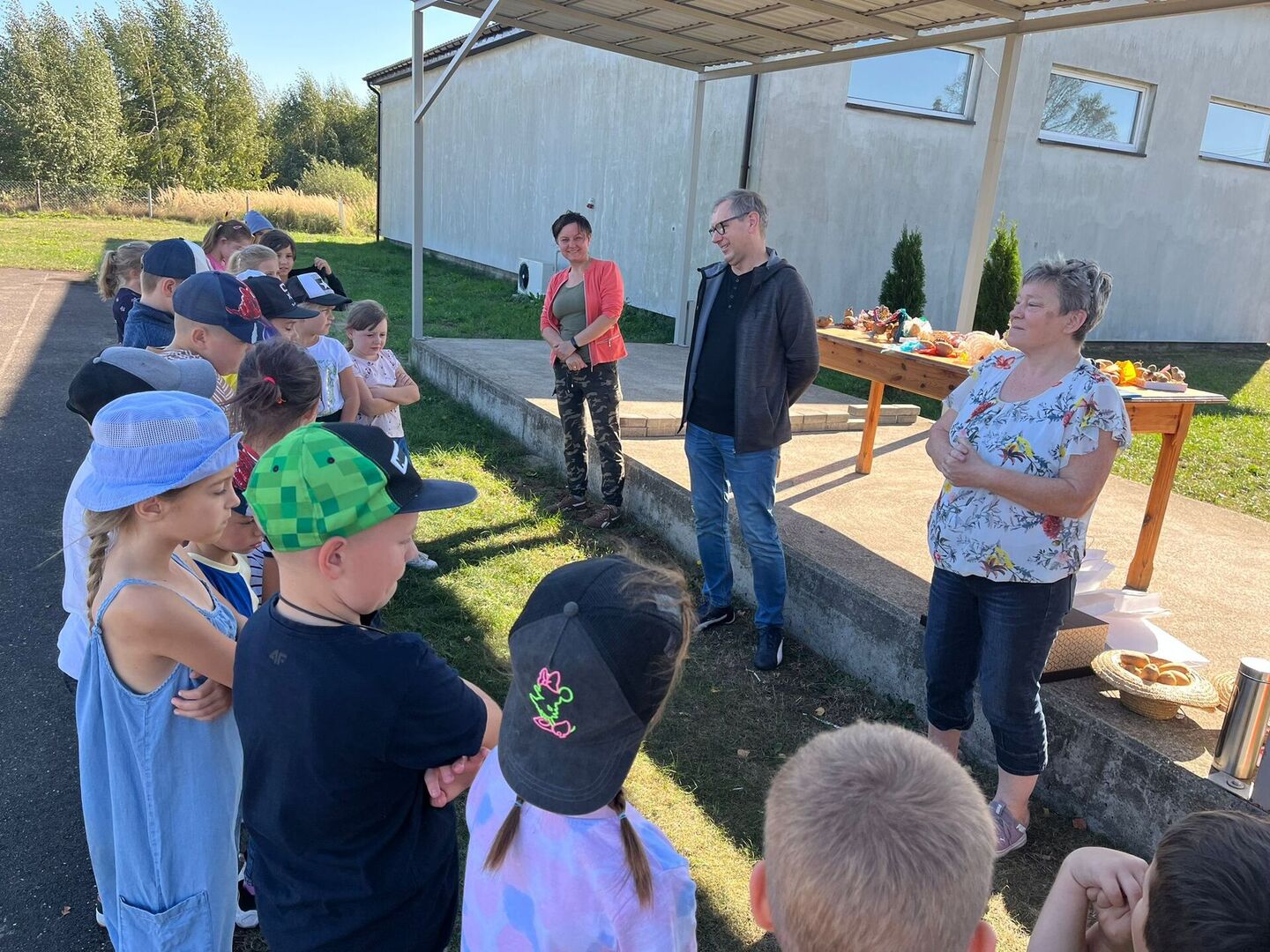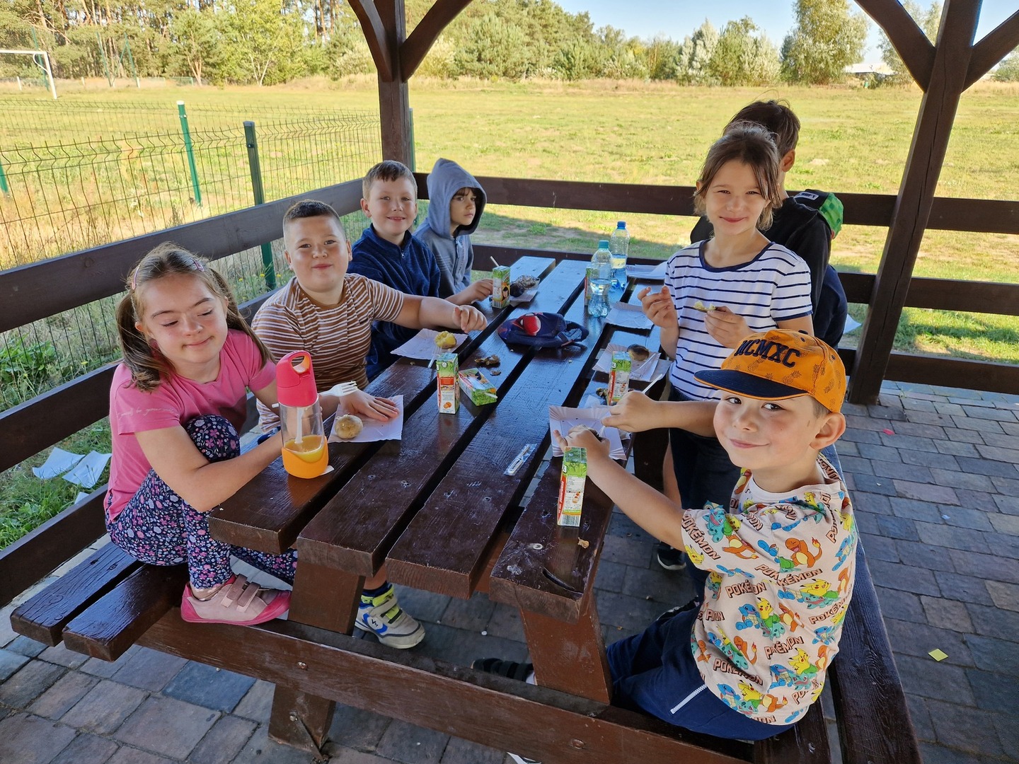 21 września klasy I-III wybrały się wraz ze swoimi wychowawcami na pieszą wycieczkę na boisko sportowe w Osieczy Pierwszej. Wyjście odbyło się na zaproszenie Pani Katarzyny Sobczak w celu rozstrzygnięcia konkursu plastycznego na wykonanie kukiełki z ziemniaka pt. "Pyrka się nazywam", zorganizowanego przez Koło Gospodyń Wiejskich Osieczanki z Osieczy. Ogłoszenie wyników konkursu odbyło się na w bardzo miłej atmosferze. Oprócz wręczenia dzieciom nagród, czekały na nie jeszcze inne atrakcje: