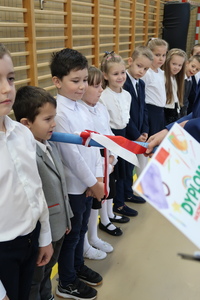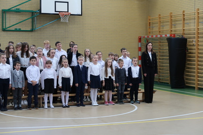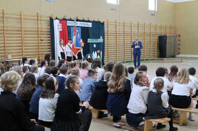 Po podziękowaniach pana dyrektora za przybycie i udział w wydarzeniu, w dobrych humorach opuściliśmy salę gimnastyczną.
