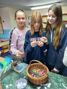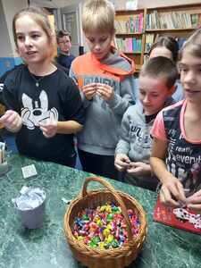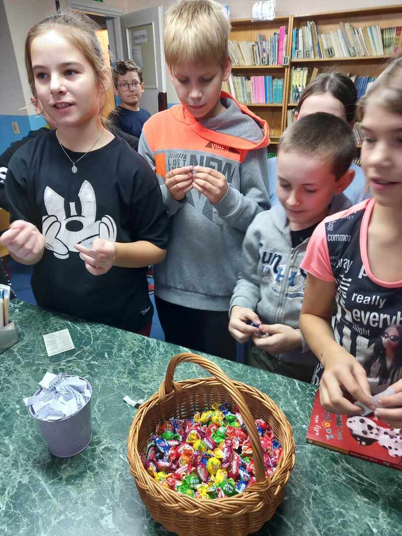 Podczas przerw panował w niej „duży ruch”. Dzieci i młodzież chętnie tam zaglądali. Losowali pytania dotyczące czytania i biblioteki, nagrodą za dobrą odpowiedź były słodkości. A co działo się w klasach?... wiele ciekawych rzeczy. Tego dnia wszyscy obecni w szkole zostali „poczęstowani” inspirującymi cytatami dotyczącymi książek, biblioteki i czytania.