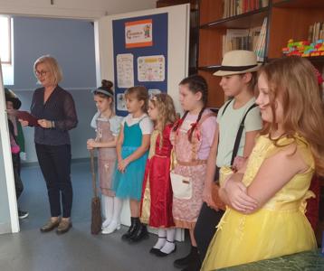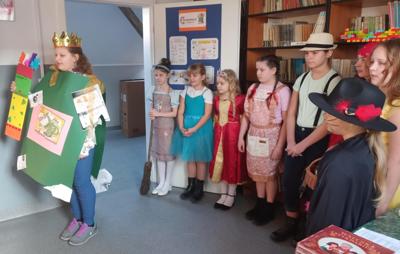 4 marca 2025r. pierwszoklasiści z naszej szkoły mieli pasowanie na czytelnika i zostali oficjalnie przyjęci do biblioteki szkolnej. Dziewczynki z klas III, V i VI, przebrane w przepiękne bajkowe stroje sprawdziły, czy dzieci znają bajki, a także przypomniały, jak należy dbać o książki. Inscenizacja została przygotowana pod czujnym okiem p. Anny Wróbel, opiekunki naszego szkolnego księgozbioru. Uroczystość swoją osobą zaszczycił p. dyrektor Piotr Kupski, który pogratulował pierwszakom wiedzy i życzył sukcesów w czytelnictwie. Na zakończenie dzieci otrzymały upominki - książkę i zakładkę.