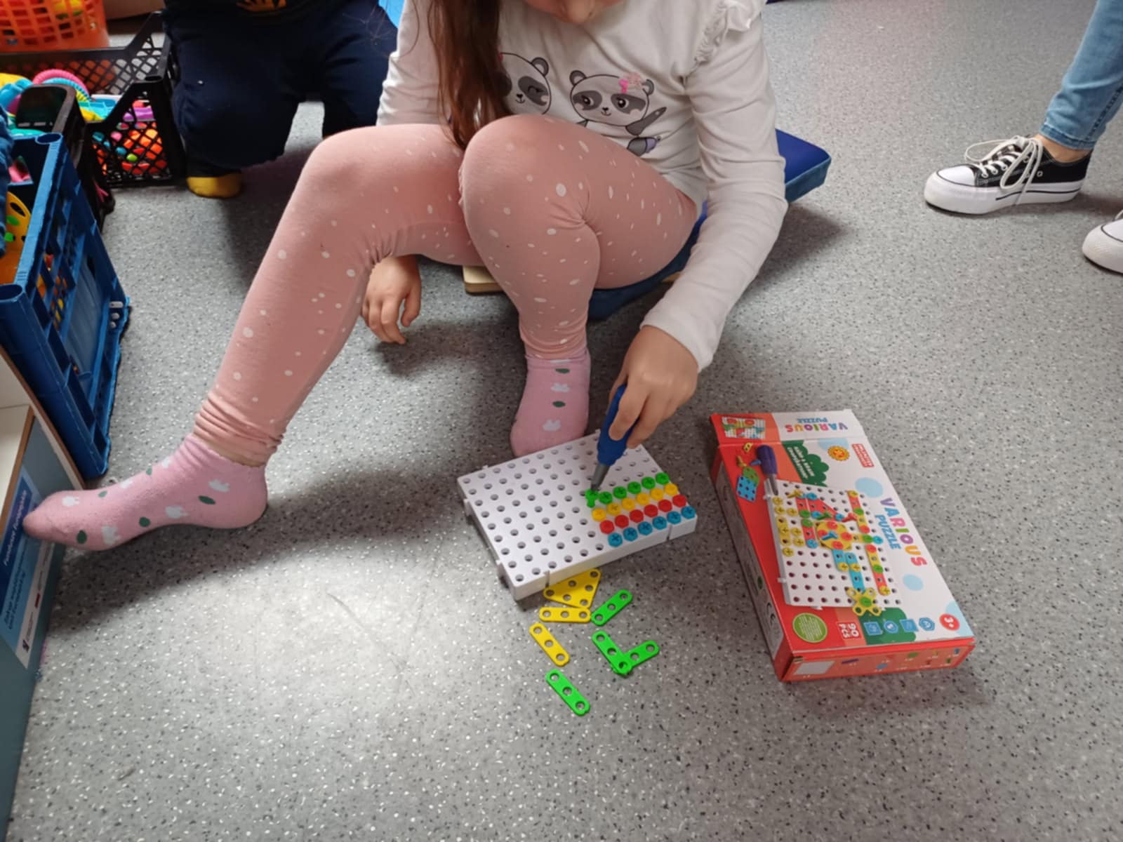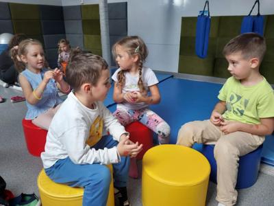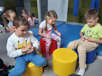 Zajęcia dla dzieci w ramach projektu "Edukacja przedszkolna jak z bajki w Gminie Rzgòw". Projekt nr FEWP.06.07-IZ.00-0032/23, realizowany w ramach działania 6.7 Edukacja przedszkolna, ogólna oraz kształcenie zawodowe w naborze, Fundusze Europejskie dla Wielkopolski 2021-2027.