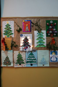 Przed przerwą świąteczną p. Edyta Kabacińska ogłosiła dwa konkursy. Dla klas 1-3 na projekt choinki a w klasach 4-5 na kartkę bożonarodzeniową. Za projekt choinki przyznano dwa pierwsze miejsca dla Małgosi Szczepaniak z klasy 3 i Antoniego Babiaka z klasy 2. W konkursie na kartkę bożonarodzeniową...