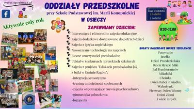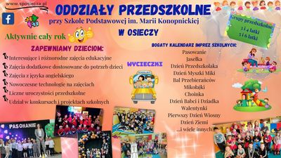 16 czerwca 2024 roku na terenie Szkoły Podstawowej im. M. Konopnickiej w Osieczy odbył się Piknik Rodzinny zorganizowany przez Radę Rodziców. Podcza pikniku można było obejrzeć występu taneczno-wokalne uczniów Naszej szkoły oraz zapoznać się z jednostką strażacką OSP Barłogi....